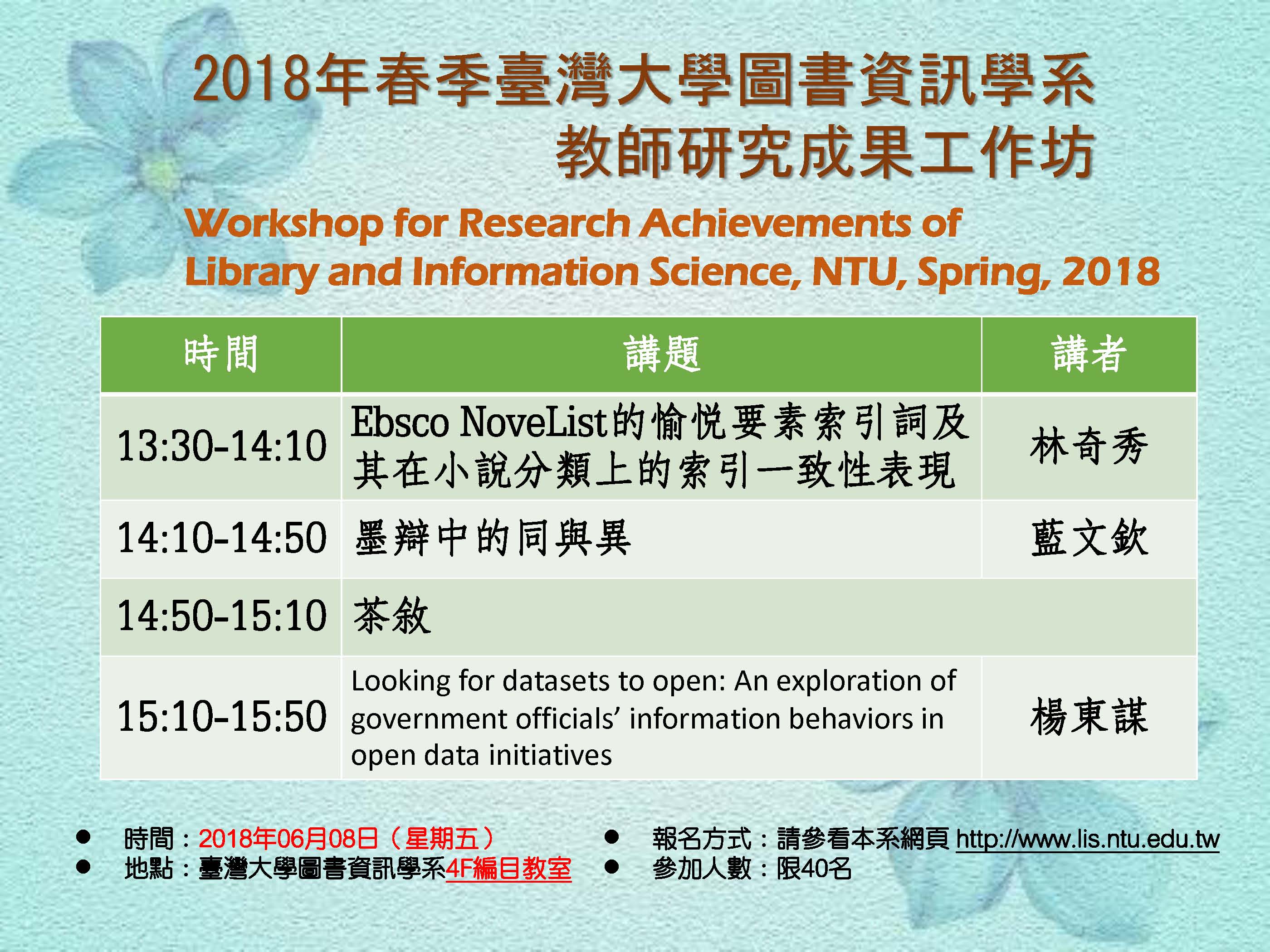 蔡宜玲; 02-33662953; lis@ntu.edu.tw