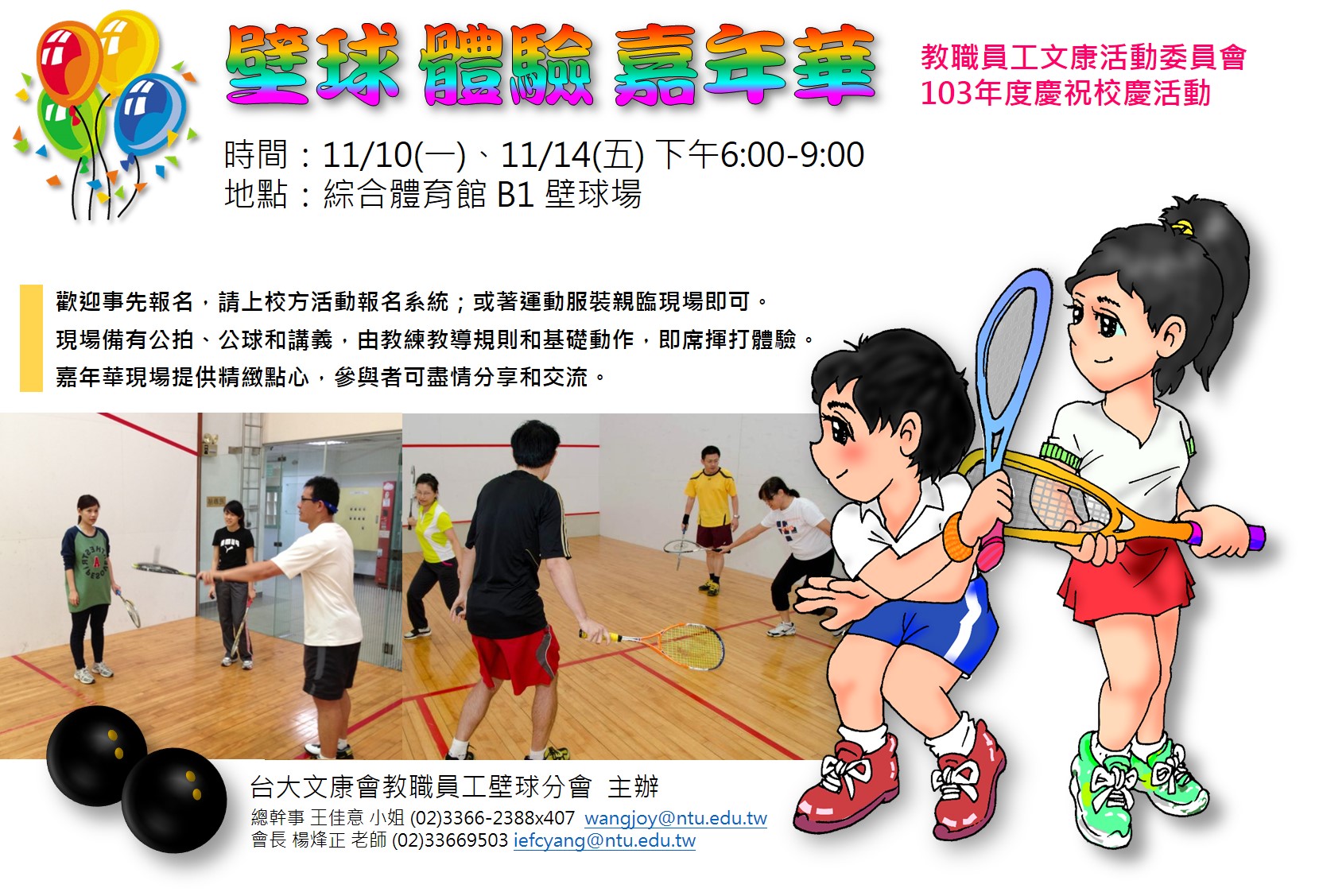 國立台灣大學103年度慶祝校慶「壁球體驗 嘉年華」活動