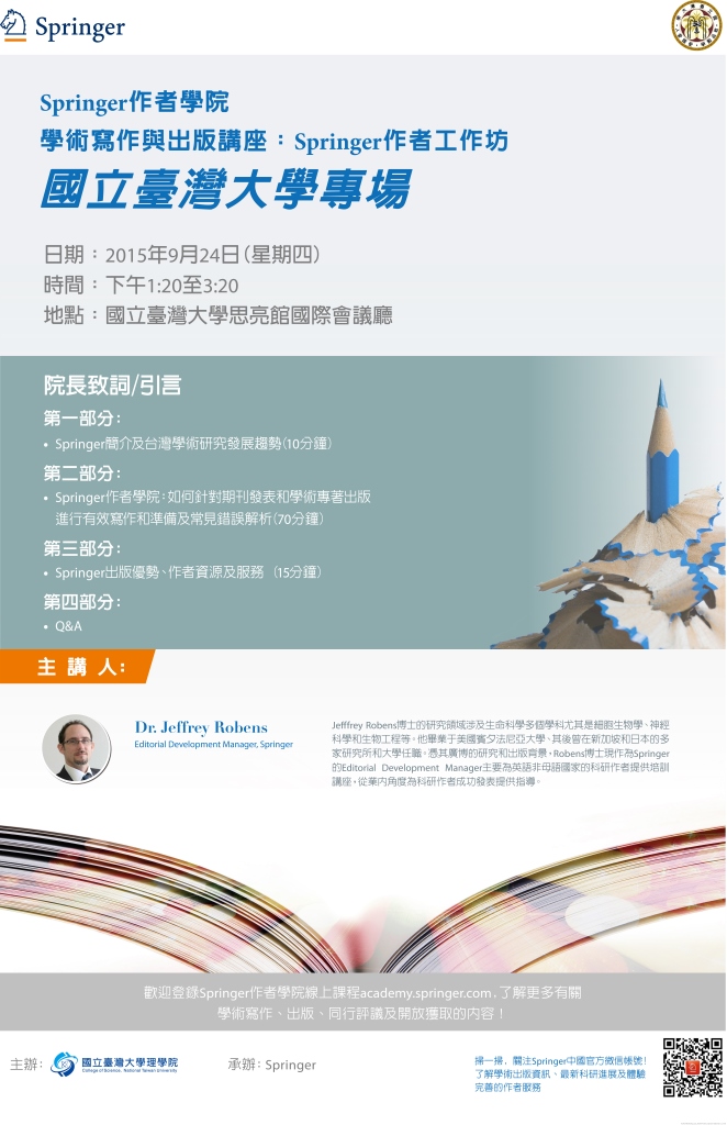 ‧ Springer作者學院:如何針對期刊發表和學術專著出版 進行有效寫作和準備及常見錯誤解析(70分鐘)