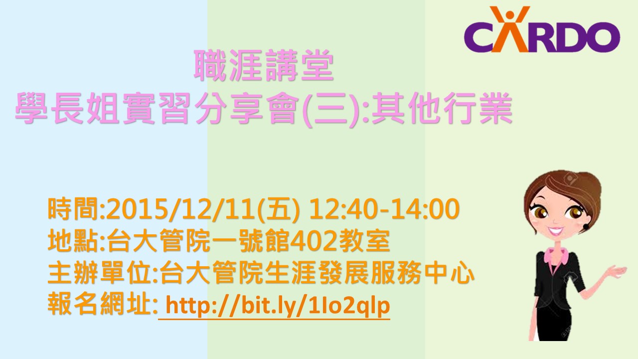 〔CARDO職涯講堂〕實習這檔事!學長姊經驗分享會場次名稱