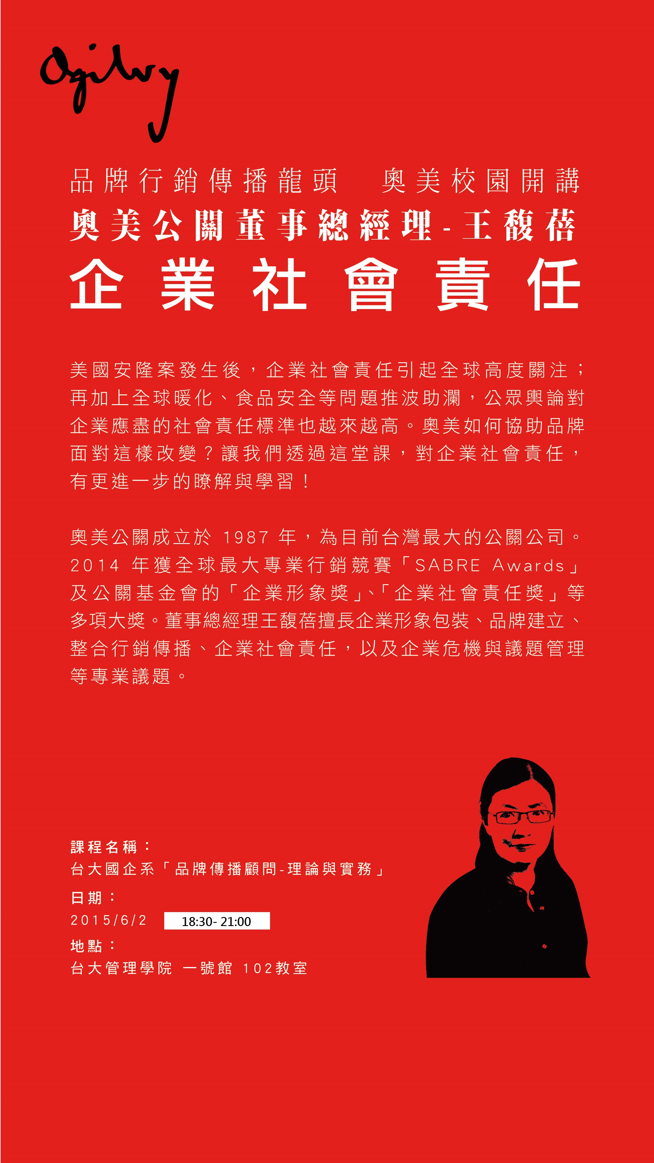 企業社會責任 (主講人: 奧美公關董事總經理 王馥蓓小姐)