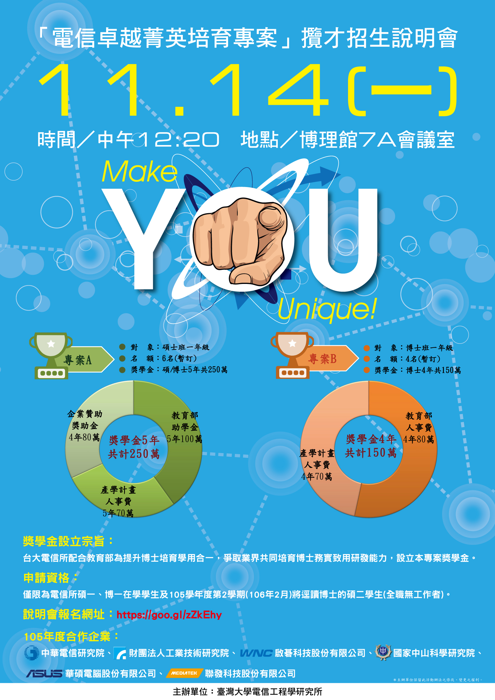 11/17 台大電信所「電信卓越菁英培育專案」攬才招生說明會