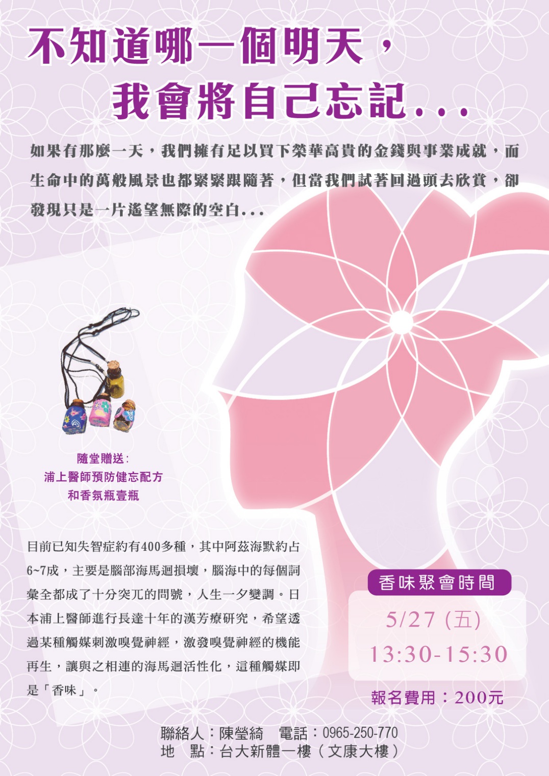 備 註:贈送「浦上醫師預防健忘配方」和「香氛瓶」授課人