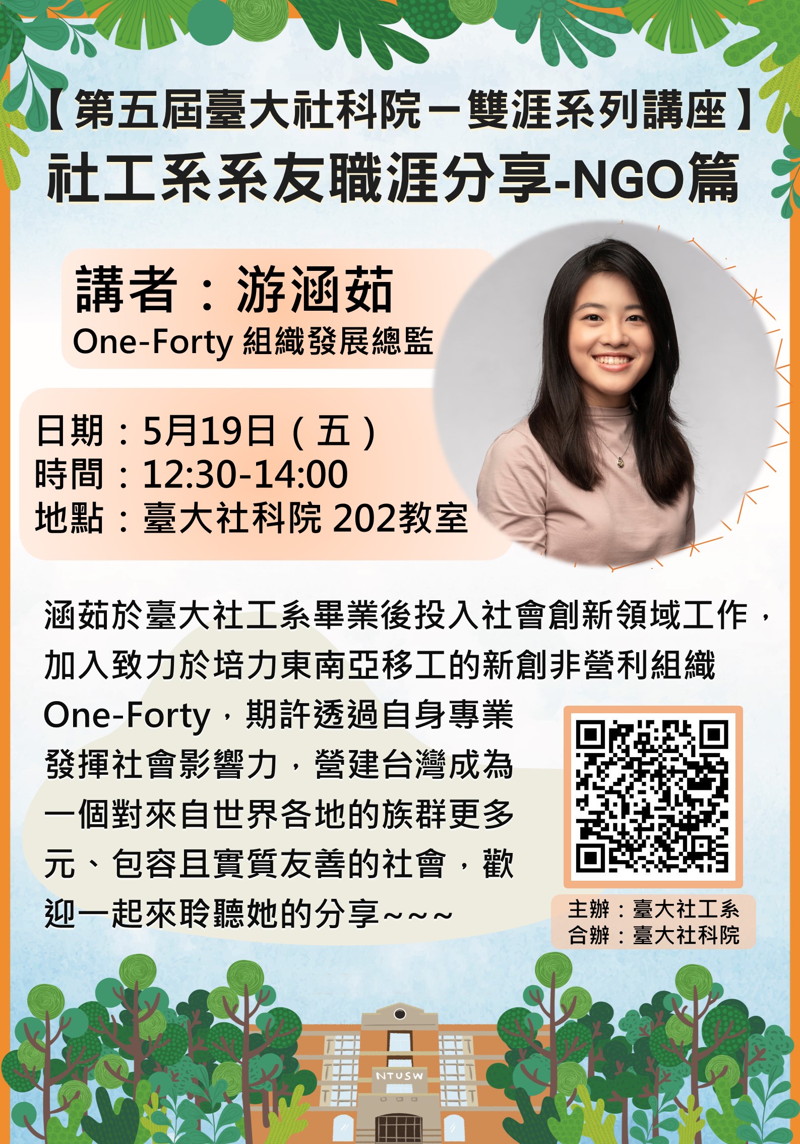 【第五屆臺大社科院-雙涯系列講座】社工系系友職涯分享-NGO篇