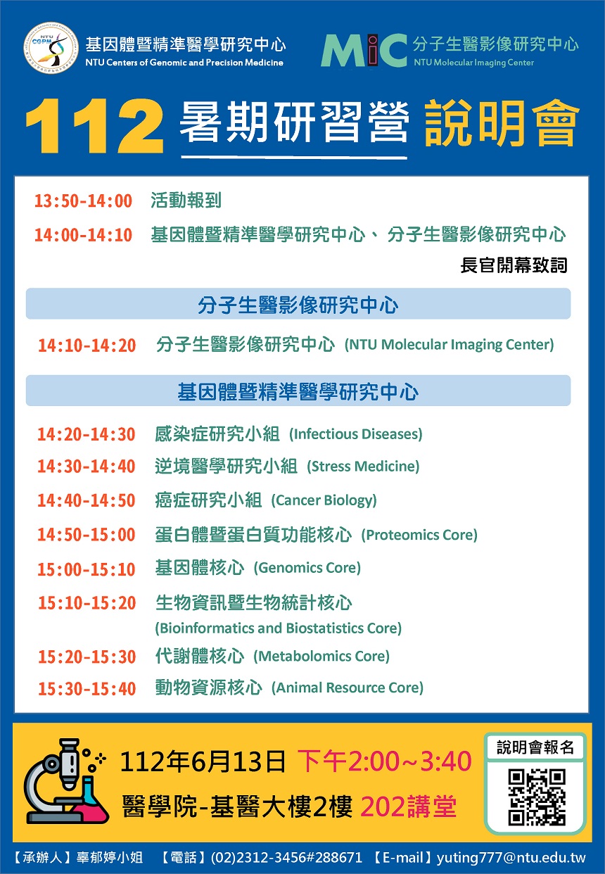 【精準醫學研究中心】112年 第17屆「暑期研習營-說明會」報名開跑!