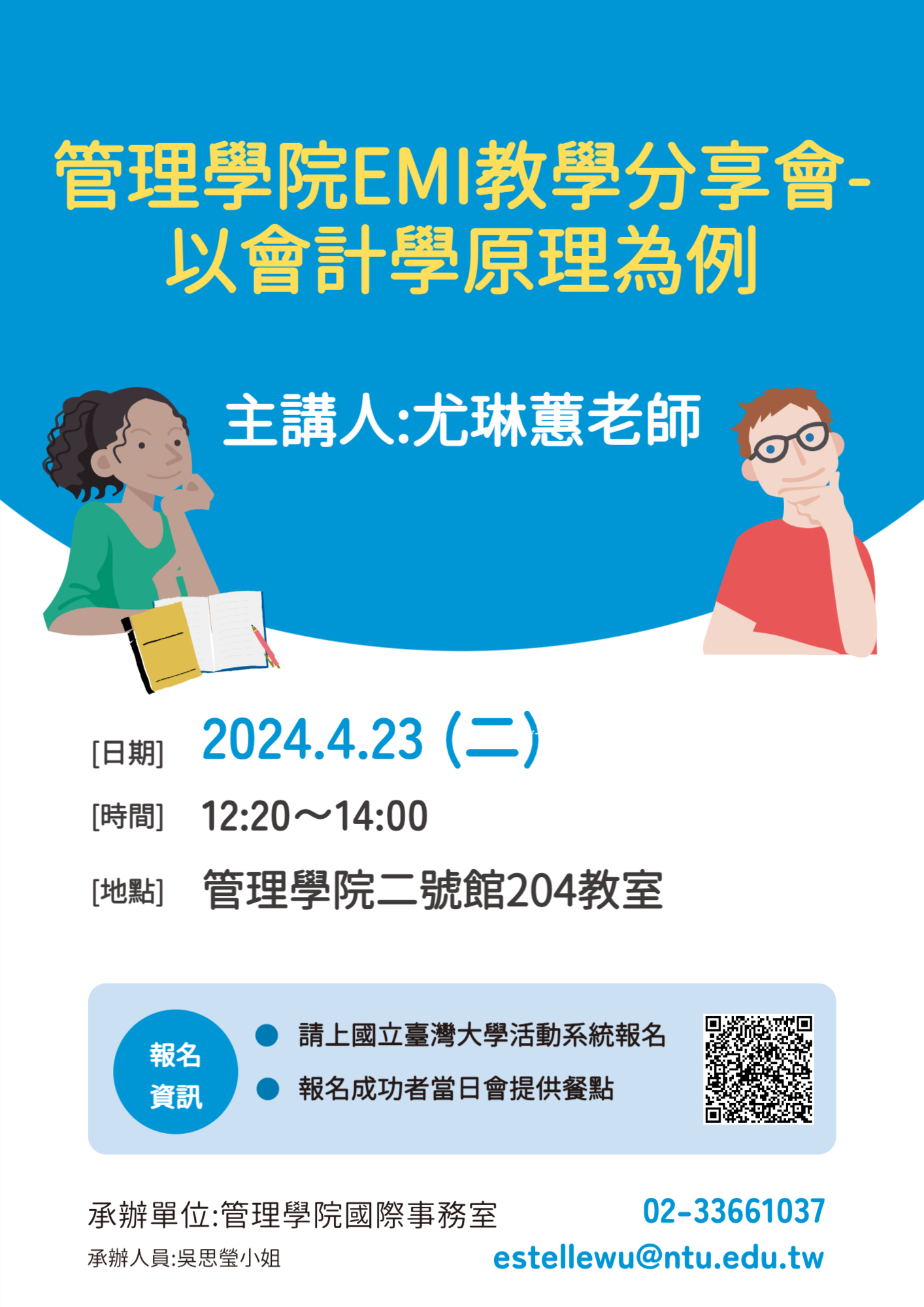 吳思瑩; 02-33661037; estellewu@ntu.edu.tw報名類型