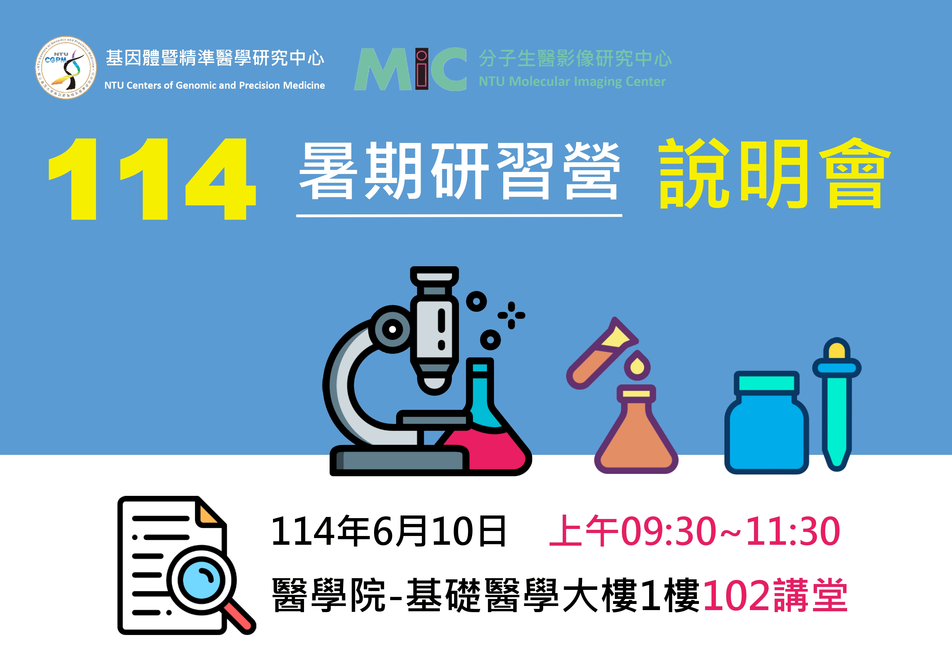 【精準醫學研究中心】114年 第19屆「暑期研習營-說明會」報名開跑!